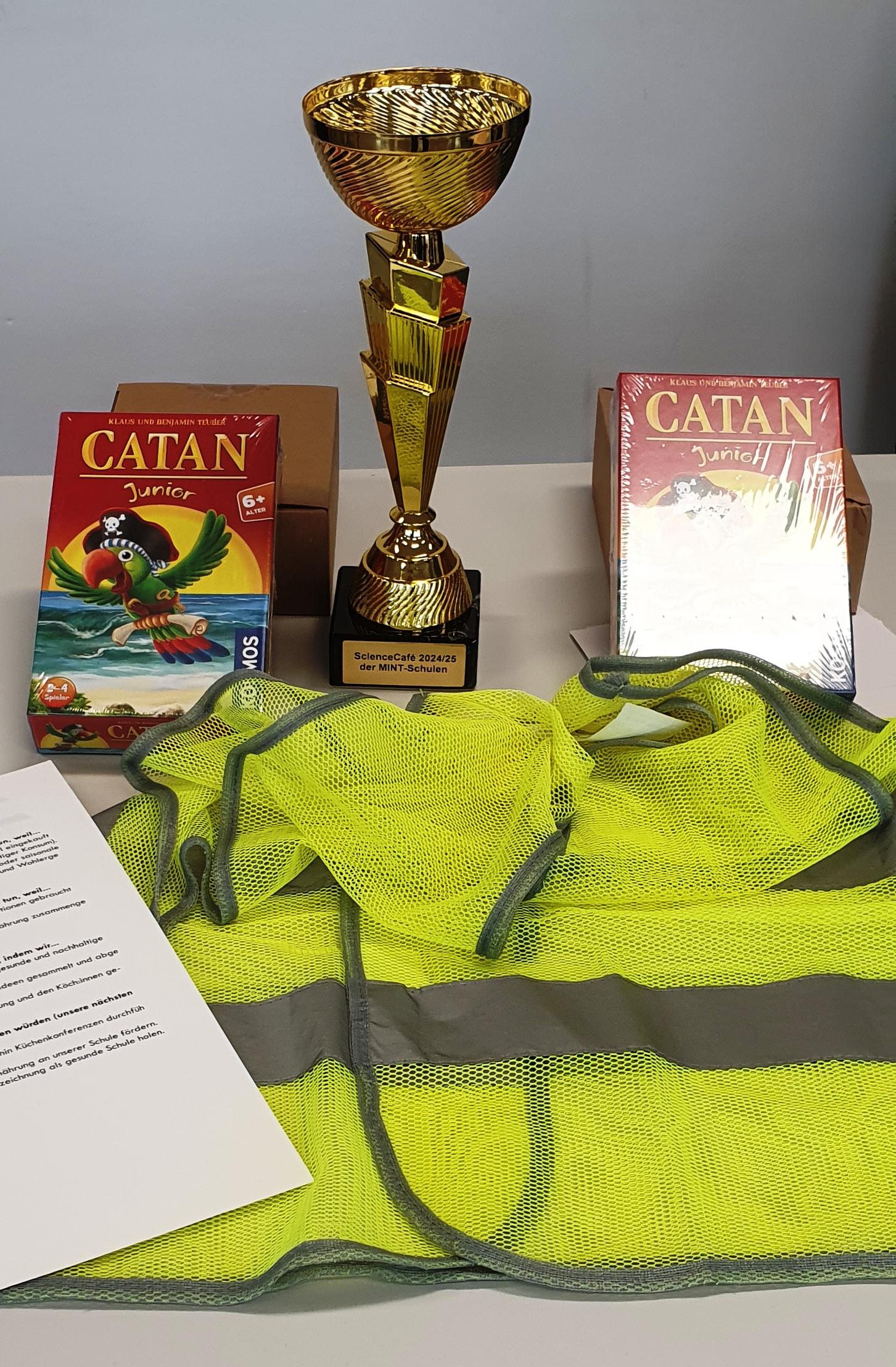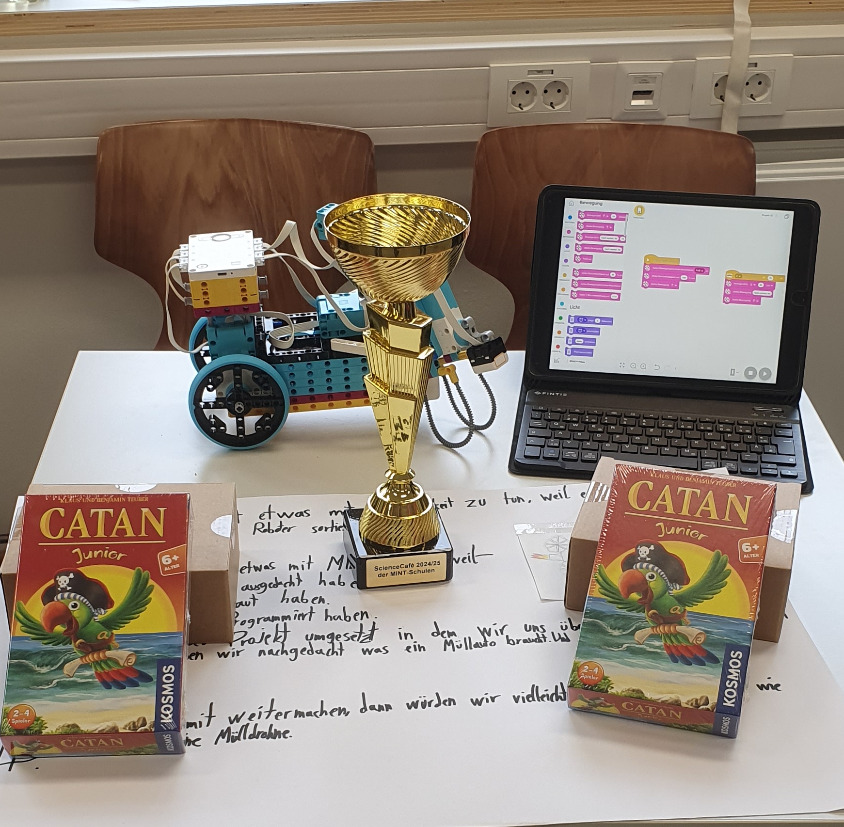 Alle Projekte zeigten eindrucksvoll, wie vielseitig Nachhaltigkeit gelebt werden kann. Entsprechend schwer fiel es Frau Bauer dann auch, eine Entscheidung zu treffen. Schließlich wurden die Küchen-AG und der Robotikkurs als Siegerteams ausgezeichnet. Neben einem DIY-Holzradio für alle Teilnehmer:innen gab es für die Gewinnergruppen zusätzlich ein Brettspiel als Preis.