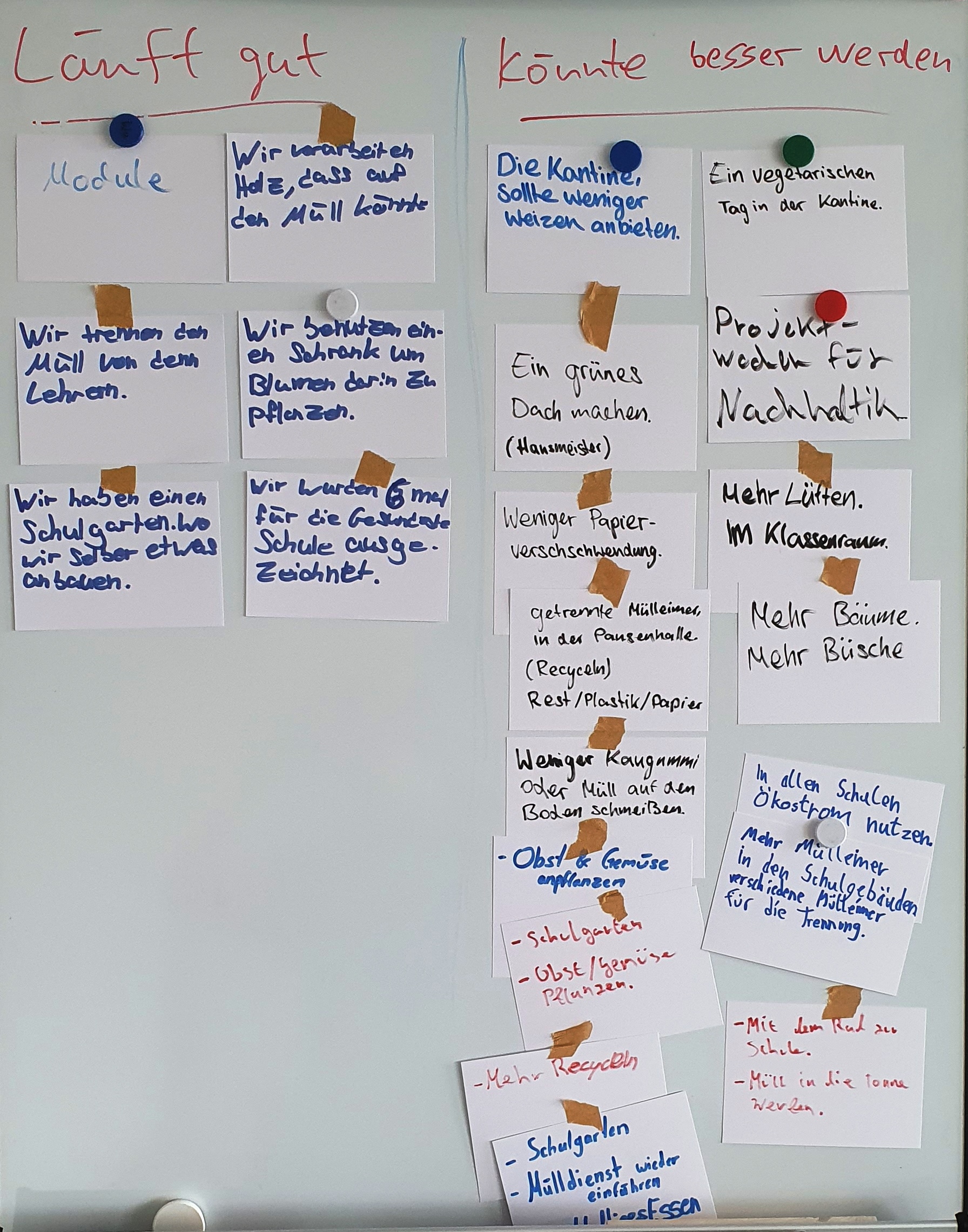Zwischen Marktplatz und Prämierung fand zudem ein Workshop mit den Schüler:innen statt. Dabei sammelten sie Ideen und diskutierten, was an unserer Schule bereits gut in Sachen Nachhaltigkeit läuft und welche Verbesserungen wir noch angehen könnten – und präsentierten dabei viele gute Vorschläge.